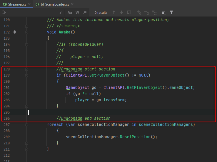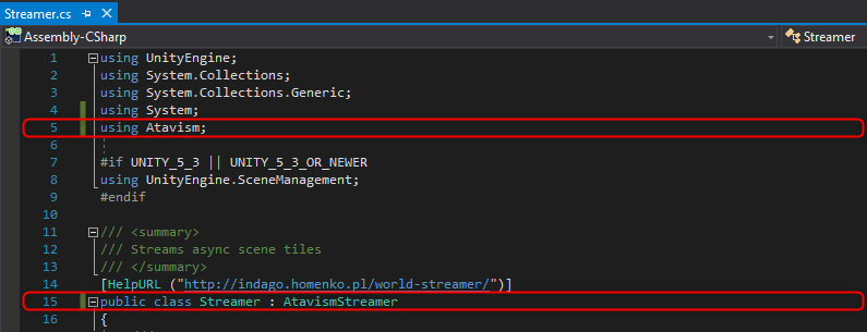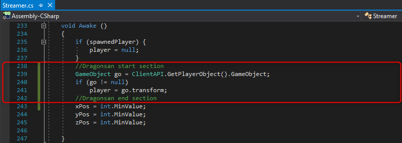 - Find Streamer.cs file in your project and open it to modify its content (mostly find //Dragonsan sections, copy and paste these sections into proper functions, according to the below code snippets)