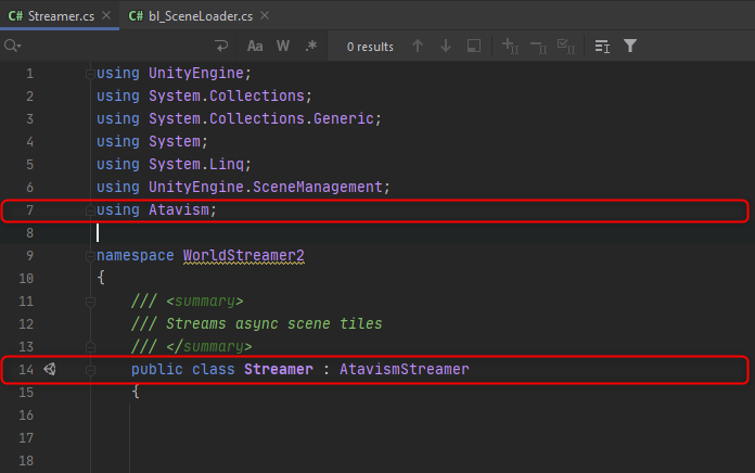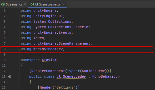 withpublic class Streamer : AtavismStreamer - Add below code before last closing bracket }