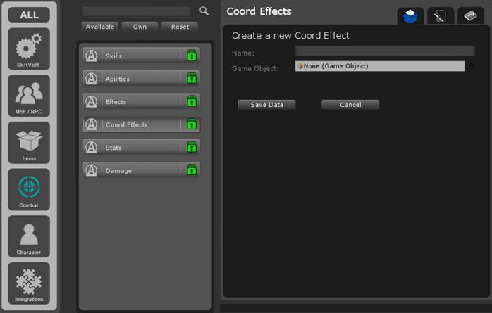 1)在Atavism编辑器中,单击Coord Effects插件。写下您的协调效果的名称(它不必与您的预制名称匹配)然后将您的预制件拖到游戏对象插槽中,然后单击保存。