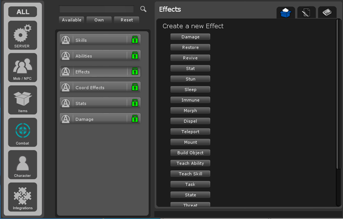 Stat属性:此效果类型定义可以更改哪些统计信息以及是否按值或百分比更改它们(最多5个统计信息)。它可以定义为在Logout之后保持,或者可以设置为被动能力的被动效果。