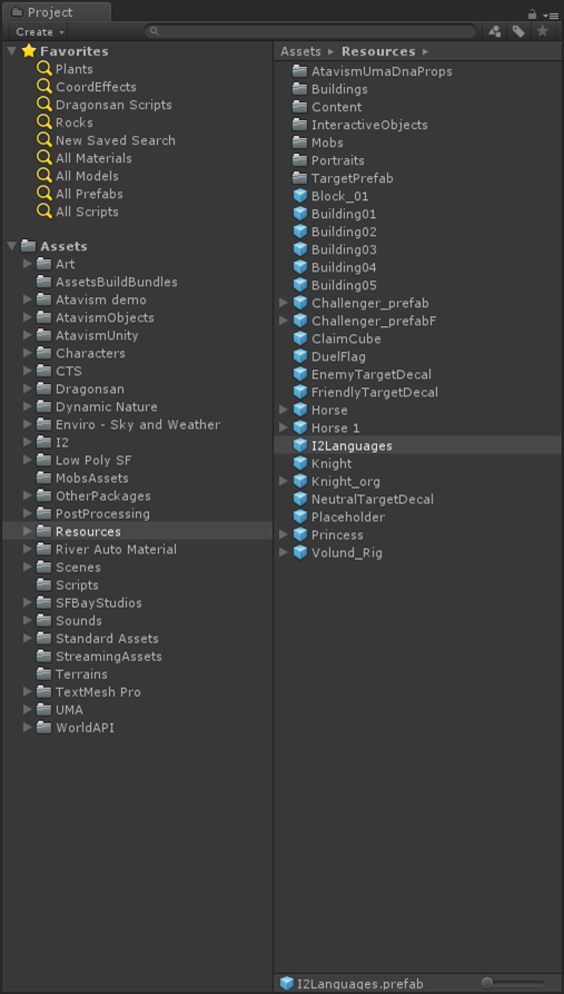 Atavism脚本将被重新编译为使用I2本地化。 在Assets Resources目录中找到I2Languages预制件