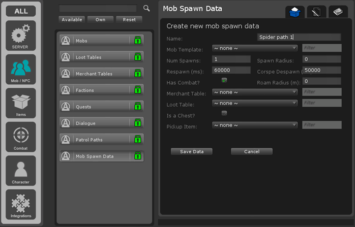 Mob Spawn Data Plugin可用于使用Combat Effects插件生成野生怪物,可以附加到: